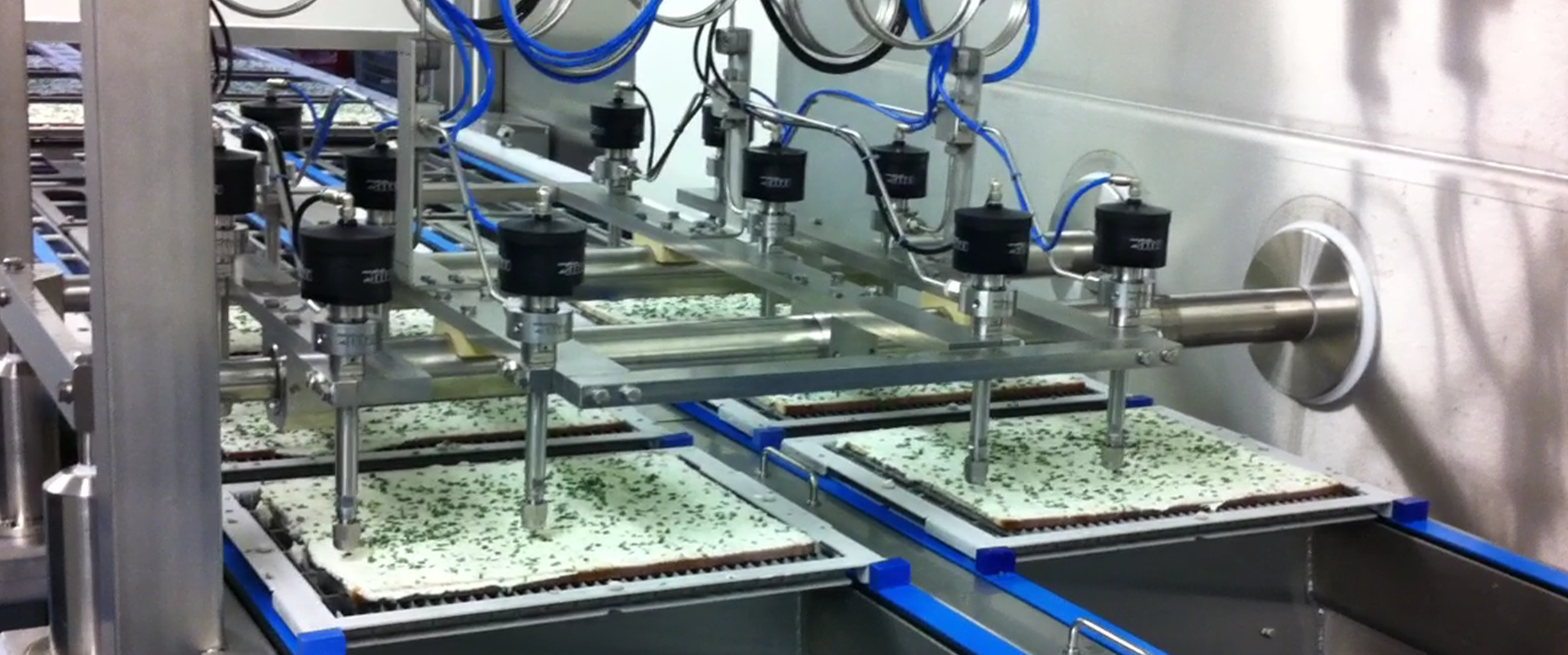 In addition to ChefCut®, which is mainly designed for small and medium-sized businesses, HYDROPROCESS also offers more productive waterjet cutting machines for industrial and semi-industrial food processing operations. These machines typically feature multiple cutting heads and are integrated directly into production lines.
